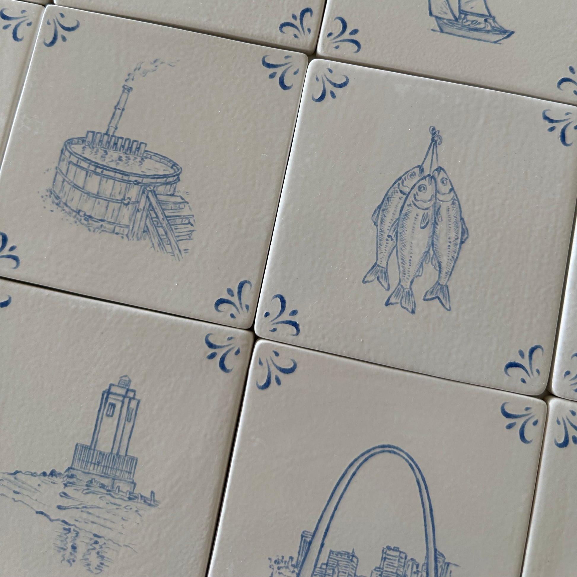 Every single tile is hand drawn and hand painted in our studio in Newport, Sydney. Given the artisanal nature of each piece, there will inevitably be variations in each piece such as variations in glaze, marks, or imperfections. We believe this is what makes each tile a piece of art, and not an identical, mass produced object.